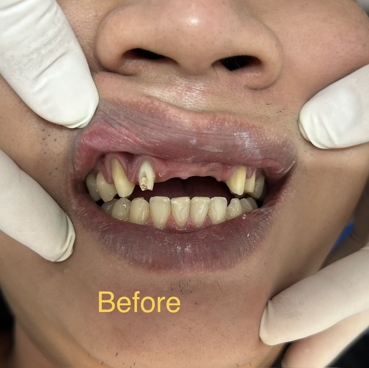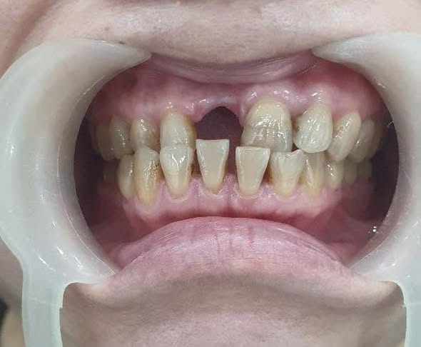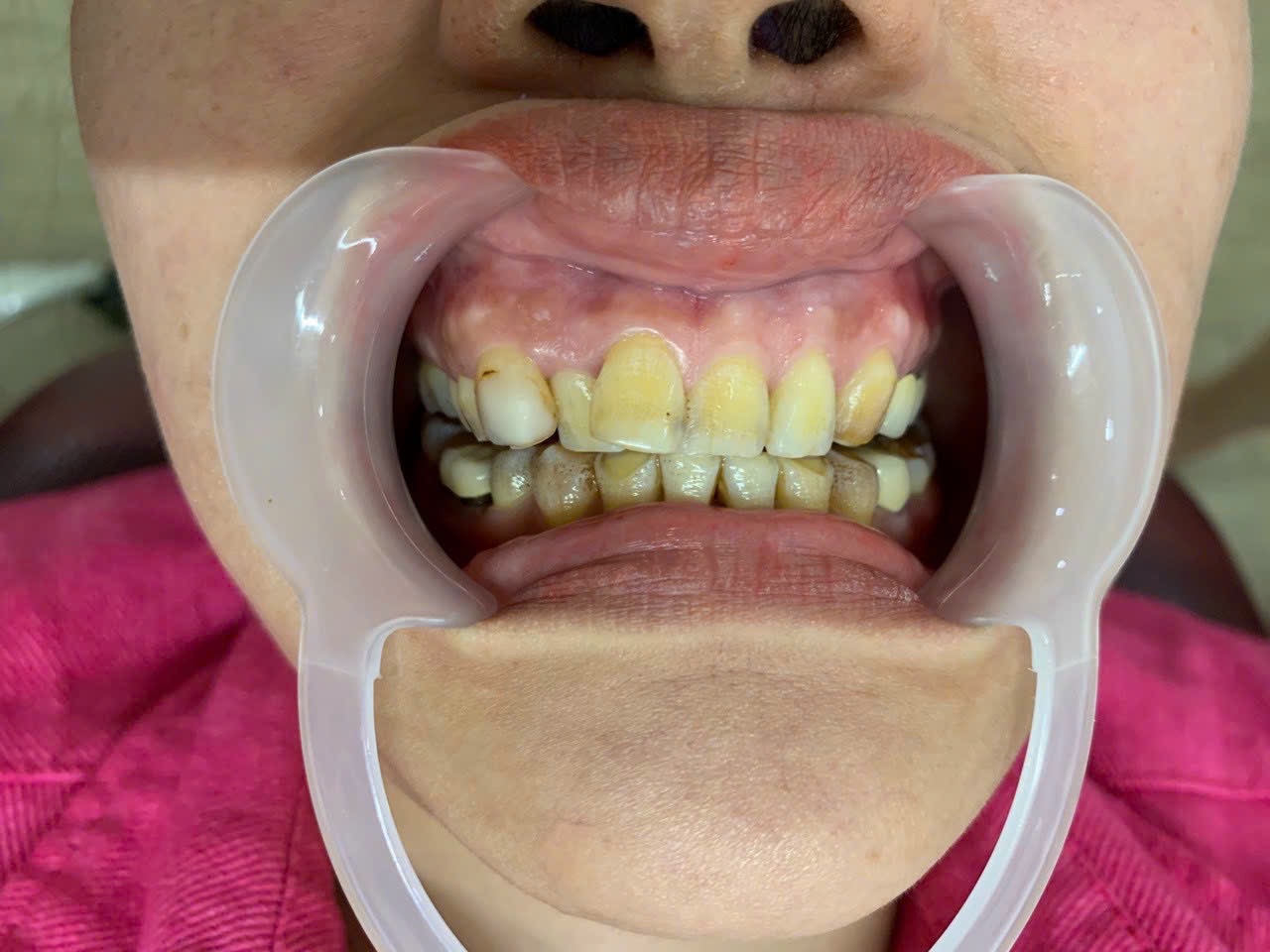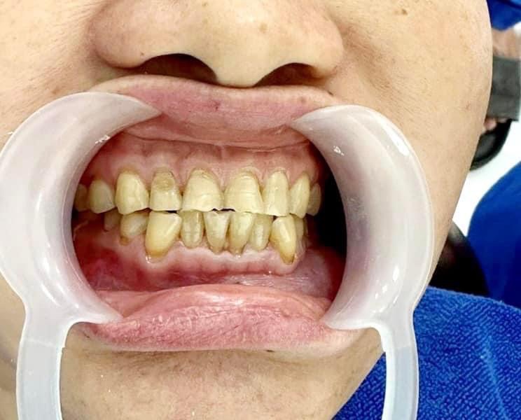 Một ca viêm nha chu nặng, tuột nướu, trồi răng, ngoài mặt thẩm mỹ , răng sứ còn là lớp bảo vệ khi men răng đã có vấn đề